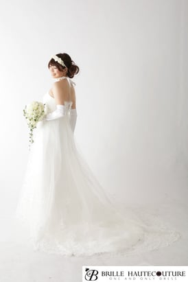 ずっと憧れていたエンパイアラインのドレスを希望し、3月の披露宴の